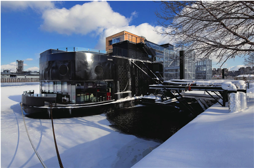 Sid Lee建筑設(shè)計(jì)工作室被委托作為Bota Bota的建筑和圖形的設(shè)計(jì)機(jī)構(gòu),要在傳統(tǒng)市區(qū)里設(shè)計(jì)一座具有現(xiàn)代感的復(fù)式水療中心。