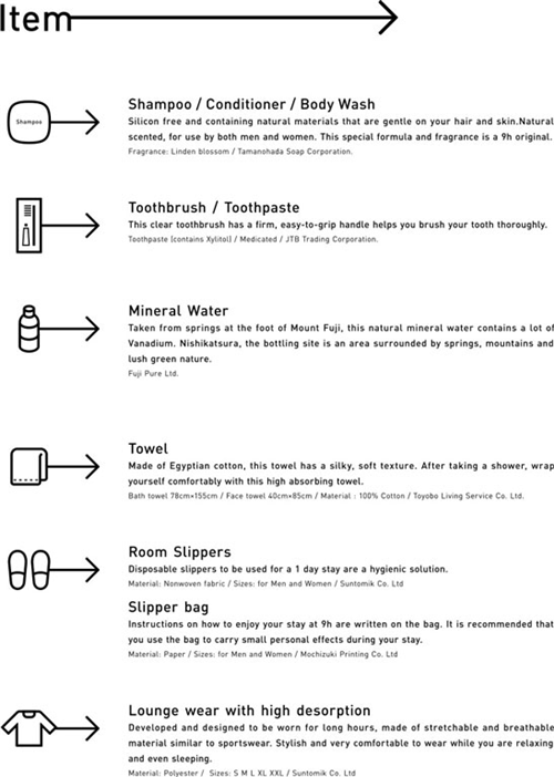 9h nine hours是一個(gè)具有強(qiáng)烈品牌創(chuàng)意的地方。9H代表了他們提倡的生活理念就是1小時(shí)的梳洗、7小時(shí)的基本睡眠時(shí)間,以及1套干凈的衣服。