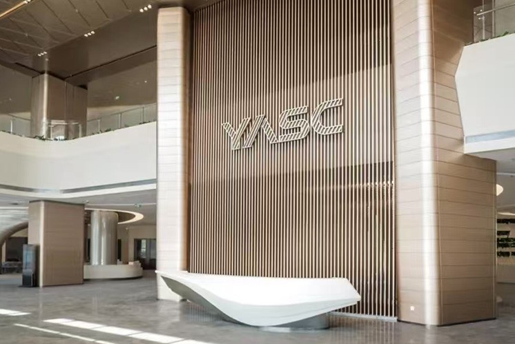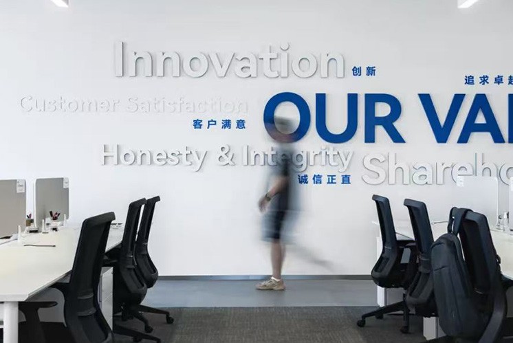 長飛半導(dǎo)體園區(qū)的每一處空間都蘊含著獨特的文化與創(chuàng)意,而文化墻更是這片科技圣地的靈魂之窗。采用高級地毯材料打造的文化墻,以藍色與綠色為主色調(diào),巧妙地將科技的冷峻與自然的生機完美融合,讓訪客在感受園區(qū)獨特的藝術(shù)魅力的同時,也能領(lǐng)略到創(chuàng)新精神的內(nèi)涵。文化墻以深邃的藍色為底色,仿佛無垠的宇宙星空,象征著科技的無限可能與探索的勇氣。其間的翠綠色,則如同生機盎然的綠洲,代表著創(chuàng)新的活力與希望。兩者相互交織,是對生態(tài)與和諧的深刻理解。選用的織棉材料,質(zhì)地柔軟而富有彈性,觸感溫潤如玉。在視覺上營造出一種柔和而高級的氛圍,紋理細膩,仿佛細膩的織錦,彰顯了園區(qū)文化的深度與溫度。