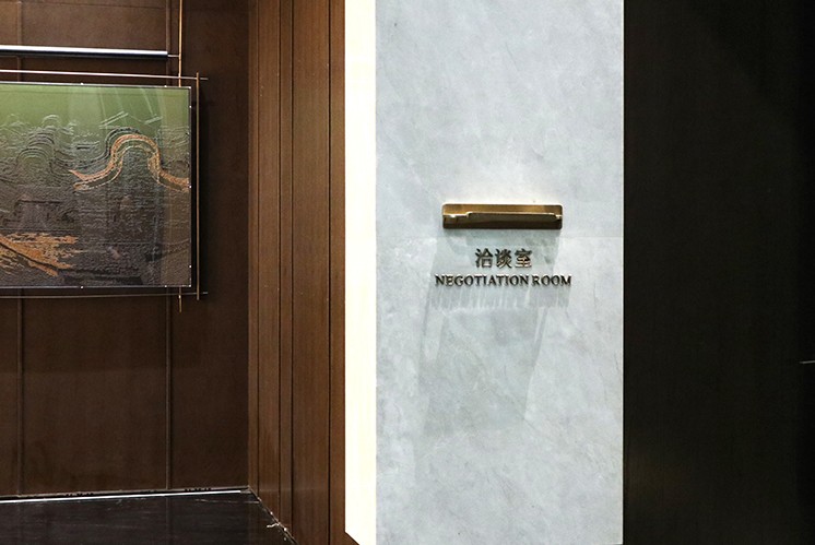 這套標識系統(tǒng)對項目高端調(diào)性的賦能,體現(xiàn)在 “私域感” 與 “定制感” 的雙重營造中。從 “輕氧花園” 的自然意趣,再到 “洽談室” 的商務(wù)私密,讓業(yè)主與訪客在動線中感受 “隱奢” 的一致性。
