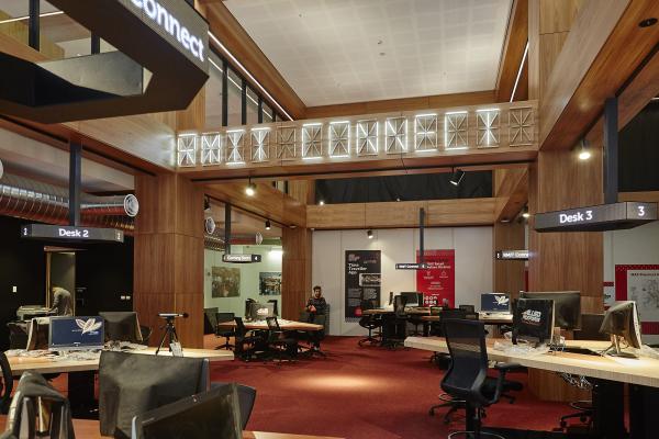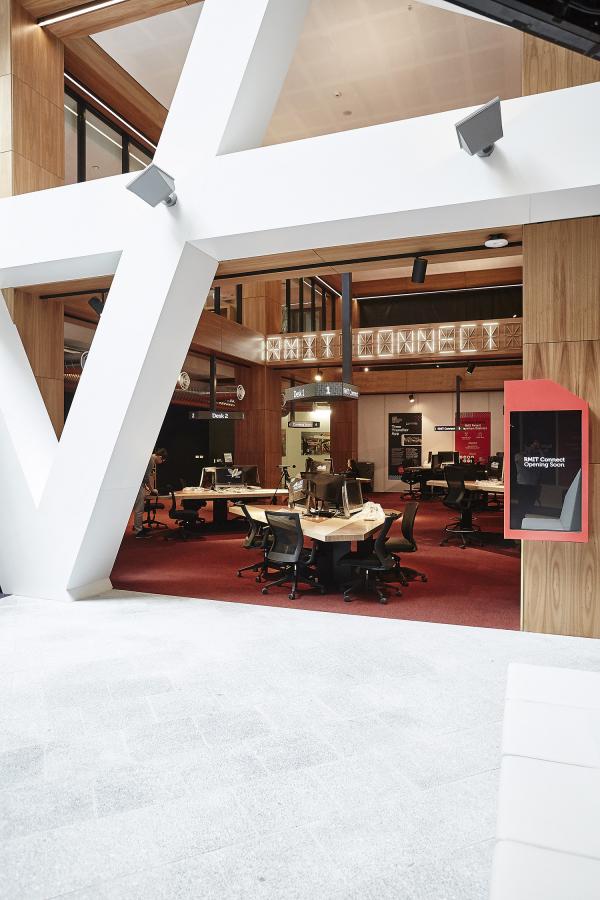 新學(xué)術(shù)街大樓,是一個大型的,多層次的教學(xué)空間,也是主要公共交通走廊和皇家墨爾本理工大學(xué)校園中心之間的重要紐帶。因此如何在這個復(fù)雜的空間中合理的設(shè)置導(dǎo)視系統(tǒng),顯得尤其重要。