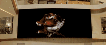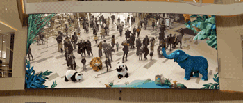 這塊LED大屏就不僅僅是展示視覺畫面這么簡(jiǎn)單了,你還能跟屏幕里的動(dòng)畫實(shí)時(shí)互動(dòng)。