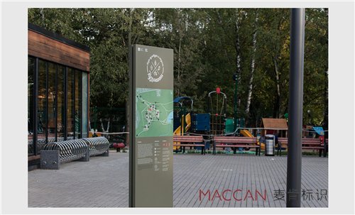 “標識系統(tǒng)設計”是公園公共空間的重要組成部分,它以規(guī)劃和設計連貫指示系統(tǒng)為內容,融合了地域文化、公園平面地圖、標志、定向標識指示和貫穿于建筑環(huán)境的細節(jié)線索,幫助人們在不同的地理位置中尋找定向。好的導視系統(tǒng)中既有清晰易懂的指示和信息,也具有隱含意義和符號。