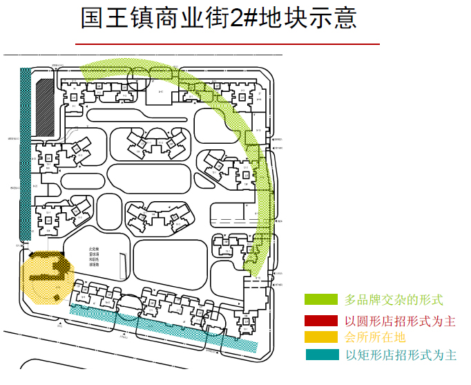 本文以國(guó)王鎮(zhèn)商業(yè)街為例,該項(xiàng)目一號(hào)地塊的面積比二號(hào)地塊略小,可以讓二號(hào)地塊來(lái)帶動(dòng)一號(hào)地塊的人氣。因此地塊的商業(yè)布局基本相同。