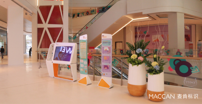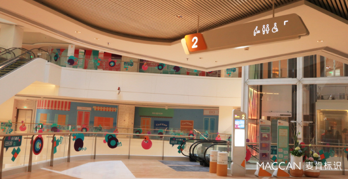 麥肯利用導視信息的碎片平面和合理分配,增加簡潔時尚的設計圖案,將整個區(qū)域打造成了休閑放松、愜意漫步的購物空間,極大滿足了消費者的心理。