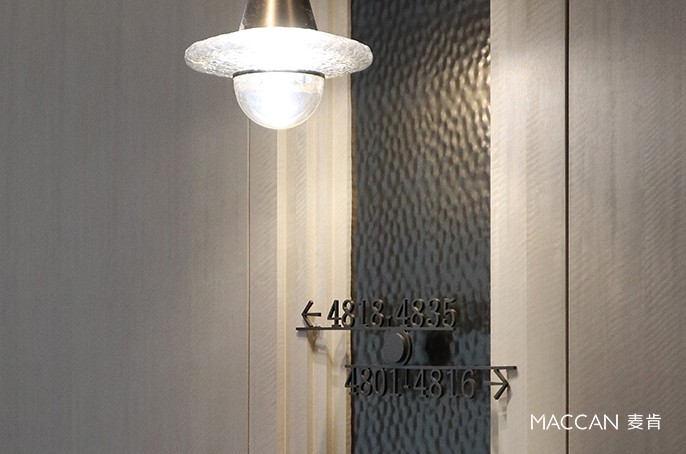 公區(qū)標(biāo)識(shí)選取淺棕、深灰、古銅色為主色調(diào),三種色彩既呼應(yīng)廣府文化的沉穩(wěn)底蘊(yùn),又與酒店 “云端漫游” 的輕奢質(zhì)感相得益彰。房間門牌號(hào)標(biāo)識(shí)尤為亮眼,采用4種樣式,不同樓層的門牌既延續(xù)整體創(chuàng)意邏輯,又融入細(xì)微視覺變化, “類似積木堆疊” 的創(chuàng)意鑲嵌進(jìn)轉(zhuǎn)角區(qū)域,讓門牌號(hào)不再是單純的數(shù)字符號(hào),更成為客房區(qū)域的藝術(shù)風(fēng)景,讓住客 “每一次抵達(dá)都有新鮮感”。
