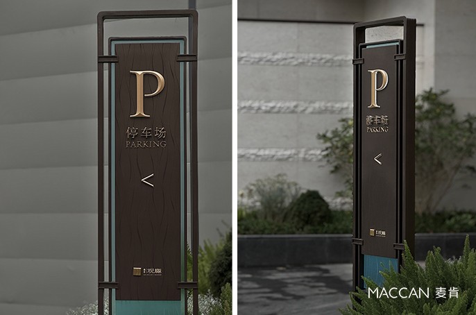 服務(wù)內(nèi)容:步入社區(qū),主入口墻面的LOGO標(biāo)識率先映入眼簾,石材與銅材在晨昏光影中流轉(zhuǎn),既透著金屬的質(zhì)感鋒芒,又含著歲月沉淀的溫潤。停車場指引立牌,以水波紋裝飾表面,金屬字的背后,立體水紋樹脂板與社區(qū)湖景遙相呼應(yīng),仿佛將湖面漣漪定格在標(biāo)識之上。戶外園林標(biāo)識的字樣,皆以仿黃銅立體字呈現(xiàn),三維尖錐的精雕工藝。讓字體兼具力量感與柔美曲線。導(dǎo)視牌如同從林間生長而出,與周邊綠植相映成趣。