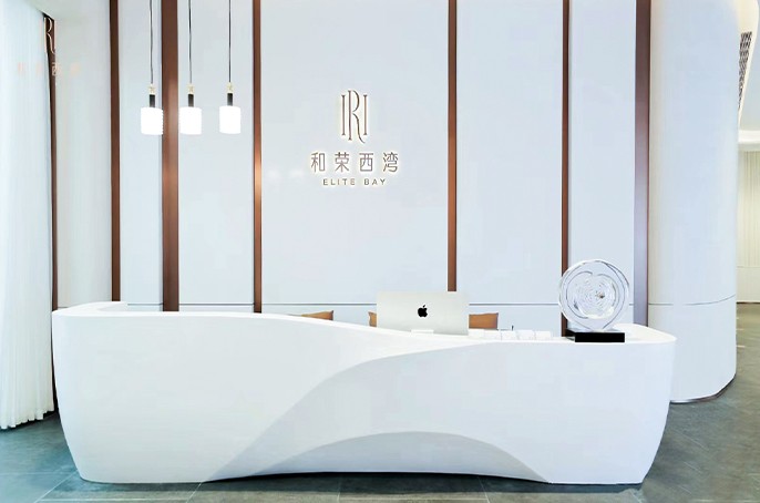 進(jìn)入營銷中心欣賞室內(nèi)的陳設(shè),標(biāo)識采用和榮西灣的“彎”的形狀,走進(jìn)一處彎月細(xì)節(jié),整體圖標(biāo)是圓角曲線的線條形式,與項目整體藝術(shù)氛圍相契合,頗為現(xiàn)代活潑、自然靈動之感。設(shè)計師們心生明月,留下一物一景的無窮趣味。在趣味意象的圖像里,住宅空間帶我們跨越時間的奧妙,感受恒久美好的意境。